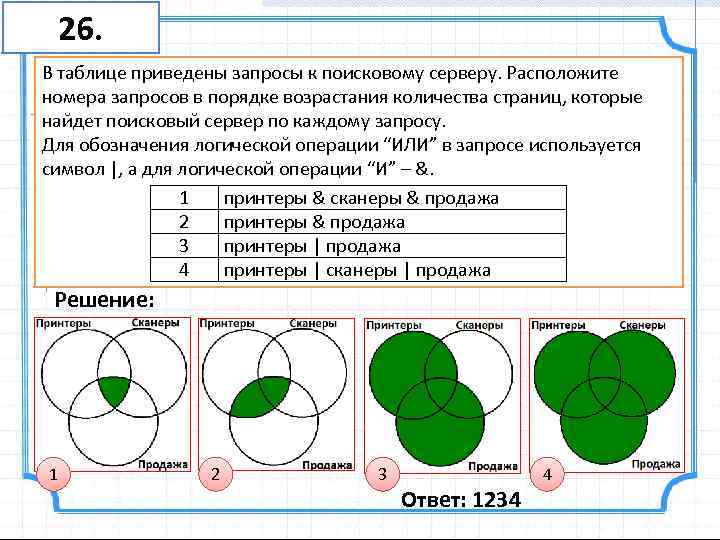 Таблица, приведённая ниже, отражает запросы в некотором сегменте сети Интернет и количество найденных страниц по этим запросам.