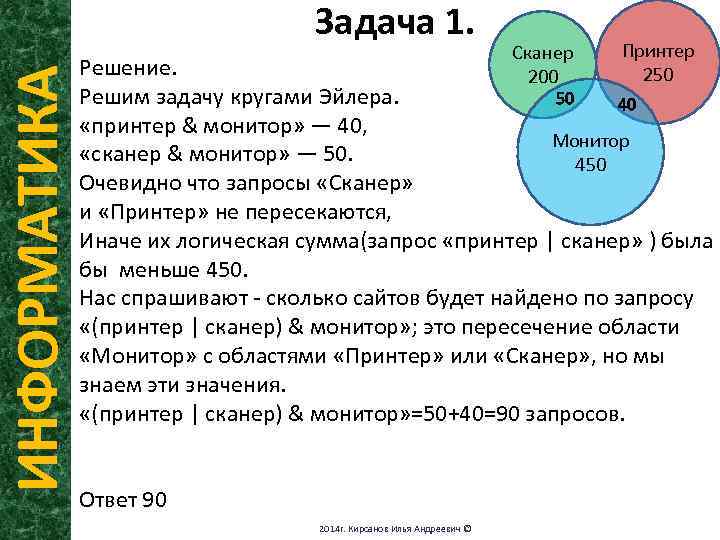 Задачи, решаемые диаграммой ЭйлераКруги Эйлера можно разделить на такие группы: