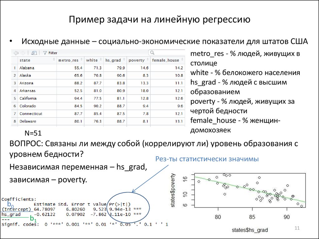 6 9 0003 | 5 | 36 9{2}}\]ΠΠΎΠ΄ΡΡΠ°Π²ΡΡΠ΅ Π·Π½Π°ΡΠ΅Π½ΠΈΡ Π² ΡΡΠ°Π²Π½Π΅Π½ΠΈΠ΅ \[b=\frac{4\times 144-20\times 25}{4\times 120-400}\] b=\[ \frac{76}{80}\] b=0,95 Π‘Π»Π΅Π΄ΠΎΠ²Π°ΡΠ΅Π»ΡΠ½ΠΎ, ΠΌΡ ΠΏΠΎΠ»ΡΡΠΈΠ»ΠΈ Π·Π½Π°ΡΠ΅Π½ΠΈΠ΅ a = 1,5 ΠΈ b = 0,95 ΠΠΈΠ½Π΅ΠΉΠ½ΠΎΠ΅ ΡΡΠ°Π²Π½Π΅Π½ΠΈΠ΅ ΠΈΠΌΠ΅Π΅Ρ Π²ΠΈΠ΄ Y = a + bx Π’Π΅ΠΏΠ΅ΡΡ ΠΏΠΎΠ»ΠΎΠΆΠΈΠΌ Π·Π½Π°ΡΠ΅Π½ΠΈΡ a ΠΈ b Π² ΡΡΠ°Π²Π½Π΅Π½ΠΈΠΈ Π‘Π»Π΅Π΄ΠΎΠ²Π°ΡΠ΅Π»ΡΠ½ΠΎ, ΡΡΠ°Π²Π½Π΅Π½ΠΈΠ΅ Π»ΠΈΠ½Π΅ΠΉΠ½ΠΎΠΉ ΡΠ΅Π³ΡΠ΅ΡΡΠΈΠΈ ΠΈΠΌΠ΅Π΅Ρ Π²ΠΈΠ΄ y = 1,5 + 0,95x 2,9 — ΠΡΠΈΠΌΠ΅ΡΡ ΠΏΡΠΎΡΡΠΎΠΉ Π»ΠΈΠ½Π΅ΠΉΠ½ΠΎΠΉ ΡΠ΅Π³ΡΠ΅ΡΡΠΈΠΈΠΡΠΈΠΌΠ΅Ρ 1: Π΄Π°Π½Π½ΡΠ΅ ΠΎ ΡΠΎΠΆΠ΄Π°Π΅ΠΌΠΎΡΡΠΈ ΠΏΠΎΠ΄ΡΠΎΡΡΠΊΠΎΠ² ΠΈ ΡΡΠΎΠ²Π½Π΅ Π±Π΅Π΄Π½ΠΎΡΡΠΈ ΠΡΠΎΡ Π½Π°Π±ΠΎΡ Π΄Π°Π½Π½ΡΡ