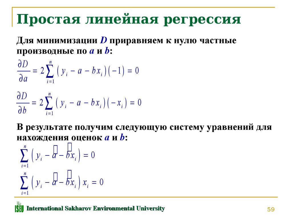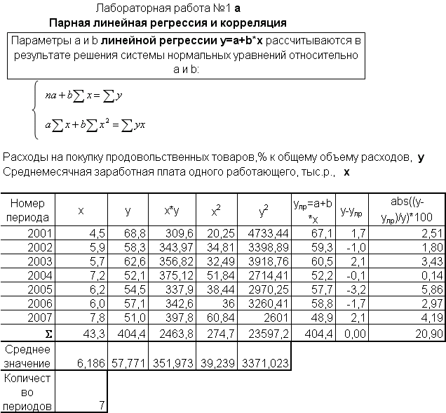 ΠΡΠ»ΠΈ Π·Π°ΡΠ°Π½Π΅Π΅ ΠΈΠ·Π²Π΅ΡΡΠ½ΠΎ, ΡΡΠΎ Π·Π°Π²ΠΈΡΠΈΠΌΠΎΡΡΡ ΠΌΠ΅ΠΆΠ΄Ρ ΡΠ°ΠΊΡΠΎΡΠΈΠ°Π»ΡΠ½ΡΠΌ ΠΏΡΠΈΠ·Π½Π°ΠΊΠΎΠΌ x ΠΈ ΡΠ΅Π·ΡΠ»ΡΡΠ°ΡΠΈΠ²Π½ΡΠΌ ΠΏΡΠΈΠ·Π½Π°ΠΊΠΎΠΌ y Π΄ΠΎΠ»ΠΆΠ½Π° Π±ΡΡΡ Π»ΠΈΠ½Π΅ΠΉΠ½ΠΎΠΉ, Π²ΡΡΠ°ΠΆΠ°ΡΡΠ΅ΠΉΡΡ Π² Π²ΠΈΠ΄Π΅ ΡΡΠ°Π²Π½Π΅Π½ΠΈΡ ΡΠΈΠΏΠ° Β , Π·Π°Π΄Π°ΡΠ° ΡΠ²ΠΎΠ΄ΠΈΡΡΡ ΠΊ Π½Π°Ρ ΠΎΠΆΠ΄Π΅Π½ΠΈΡ ΠΏΠΎ Π½Π΅ΠΊΠΎΡΠΎΡΠΎΠΉ Π³ΡΡΠΏΠΏΠ΅ ΡΠΎΡΠ΅ΠΊ Π½Π°ΠΈΠ»ΡΡΡΠ΅ΠΉ ΠΏΡΡΠΌΠΎΠΉ, Π½Π°Π·ΡΠ²Π°Π΅ΠΌΠΎΠΉ ΠΏΡΡΠΌΠΎΠΉ ΠΏΠ°ΡΠ½ΠΎΠΉ Π»ΠΈΠ½Π΅ΠΉΠ½ΠΎΠΉ ΡΠ΅Π³ΡΠ΅ΡΡΠΈΠΈ. Π‘Π»Π΅Π΄ΡΠ΅Ρ Π½Π°ΠΉΡΠΈ ΡΠ°ΠΊΠΈΠ΅ Π·Π½Π°ΡΠ΅Π½ΠΈΡ ΠΊΠΎΡΡΡΠΈΡΠΈΠ΅Π½ΡΠΎΠ² a ΠΈ b , ΡΡΠΎΠ±Ρ ΡΡΠΌΠΌΠ° ΠΊΠ²Π°Π΄ΡΠ°ΡΠΎΠ² ΠΎΡΠΊΠ»ΠΎΠ½Π΅Π½ΠΈΠΉ Π±ΡΠ»Π° Π½Π°ΠΈΠΌΠ΅Π½ΡΡΠ΅ΠΉ: