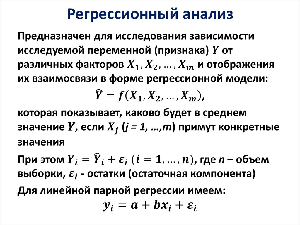 ΠΡΠ»ΠΈ Π² ΡΠ΅Π·ΡΠ»ΡΡΠ°ΡΠ΅ Π½Π°Π±Π»ΡΠ΄Π΅Π½ΠΈΡ ΡΡΡΠ°Π½ΠΎΠ²Π»Π΅Π½ΠΎ, ΡΡΠΎ ΠΏΡΠΈ ΠΊΠ°ΠΆΠ΄ΠΎΠΌ ΠΎΠΏΡΠ΅Π΄Π΅Π»ΡΠ½Π½ΠΎΠΌ Π·Π½Π°ΡΠ΅Π½ΠΈΠΈ x ΡΡΡΠ΅ΡΡΠ²ΡΠ΅Ρ ΡΠΊΠΎΠ»ΡΠΊΠΎ-ΡΠΎ (n) Π·Π½Π°ΡΠ΅Π½ΠΈΠΉ ΠΏΠ΅ΡΠ΅ΠΌΠ΅Π½Π½ΠΎΠΉ y, ΡΠΎ Π·Π°Π²ΠΈΡΠΈΠΌΠΎΡΡΡ ΡΡΠ΅Π΄Π½ΠΈΡ Π°ΡΠΈΡΠΌΠ΅ΡΠΈΡΠ΅ΡΠΊΠΈΡ Π·Π½Π°ΡΠ΅Π½ΠΈΠΉ y ΠΎΡ x ΠΈ ΡΠ²Π»ΡΠ΅ΡΡΡ ΡΠ΅Π³ΡΠ΅ΡΡΠΈΠ΅ΠΉ Π² ΡΡΠ°ΡΠΈΡΡΠΈΡΠ΅ΡΠΊΠΎΠΌ ΠΏΠΎΠ½ΠΈΠΌΠ°Π½ΠΈΠΈ.