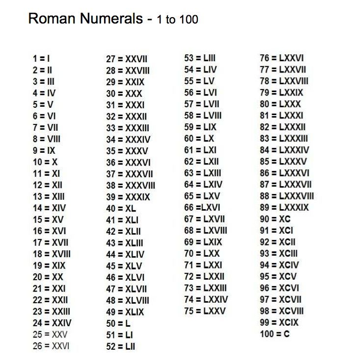 Таблица римских цифр