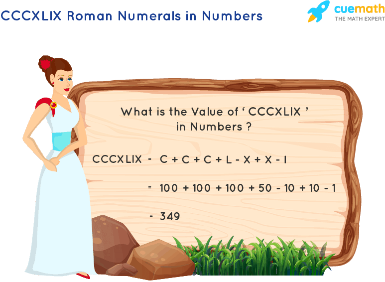 В римской системе счисления используется всего семь символов: I, V, X, L, C, D и M. I представляет число 1, V представляет число 5, X равно 10, L равно 50, C равно 100, D равно 500 и M равно 1,000. Различные расположения этих семи символов представляют разные числа.