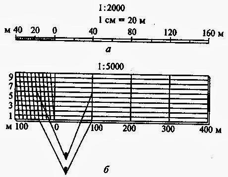 В зависимости от размера картируемой территории, назначения плана, требуемой степени детализации топографические планы строятся в масштабах 1:100, 1:200, 1:500, 1:1000, 1:2000, 1:5000.