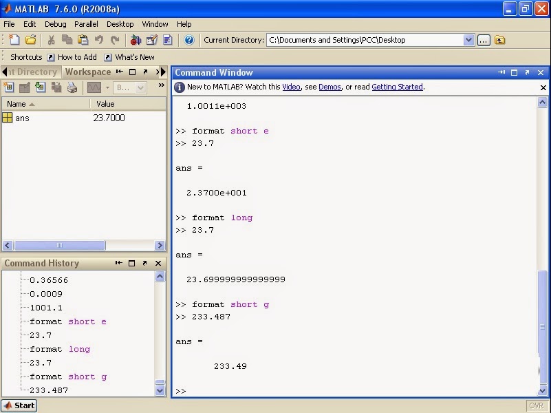 >> x error: 'x' undefined near line 1 column 1 >> x = 3 x = 3 >> x x = 3