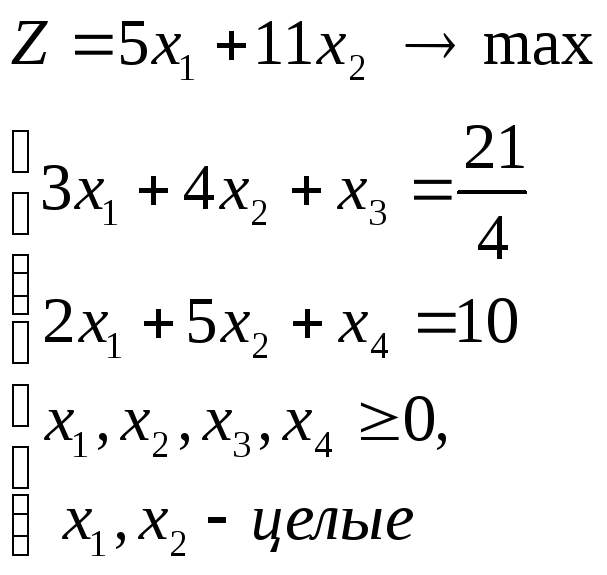 Отбрасывается условие целочисленности и полученная задача линейного программирования решается симплекс-методом. Если оптимальное решение задачи является целочисленным, то оно является и решением исходной задачи. Если оптимальное решение задачи не является целочисленным, то к основным ограничениям добавляется новое линейное ограничение, обладающее следующими свойствами:
