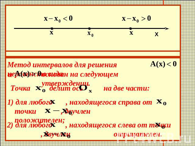 Отметим точки перехода на координатной прямой. Меньшие числа нужно отмечать левее, большие правее:
