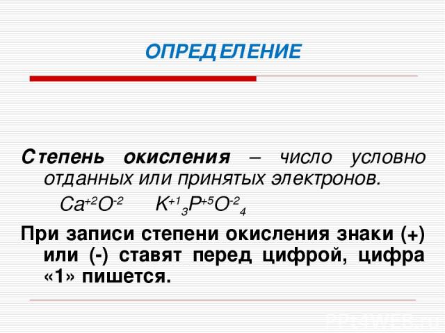 Степень окисления используется для описания реакций, которые сопровождаются отдачей или присоединением электронов.