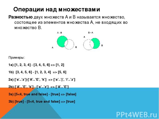 Ознакомьтесь со следующими страницами, посвященными различию множеств