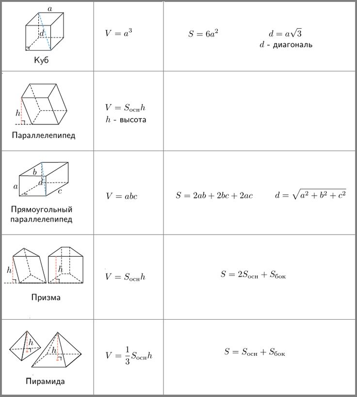 Cuboid | 2h(l + b) | 2(lb + bh + hl) | л * б * в |