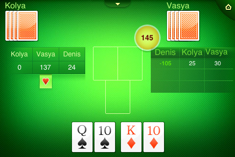 Приглашаем тебя попробовать свои силы в Тысяче — взяточной карточной игре, в которую могут принимать участие двое, трое или даже четверо любителей этого дела. Цель участников – набрать 1000 и более очков, собрав на руках наиболее дорогую комбинацию карт. Каждая карта обладает своим номиналом – валет, дама и король стоят по 2, 3 и 4 очка, десятка оценивается в десять, а туз – в одиннадцать. Кроме того, дополнительные очки начисляются за определенные комбинации карт. Игра начинается с торгов, и получивший право хода кладет на стол любую карту.