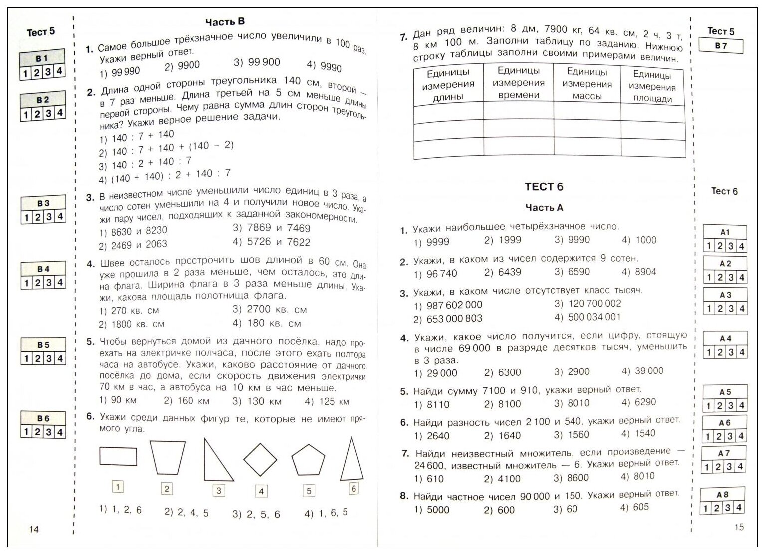 Входное тестирование по математике для учеников 4 класса14 заданий. | |