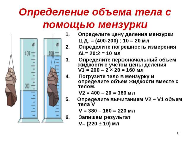 Определение объема тел правильной и неправильной формы
