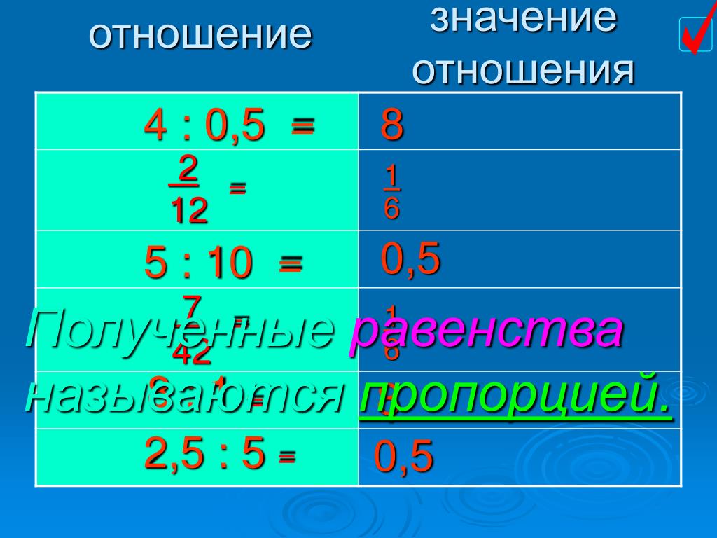Отношение aкbравно отношению cк d. Иногда пропорцию читают по-другому: «aтак относитсякb, как cотноситсяк d». Участвующие в пропорции числа называют членами пропорции. Считают, что все члены отличны от нуля.