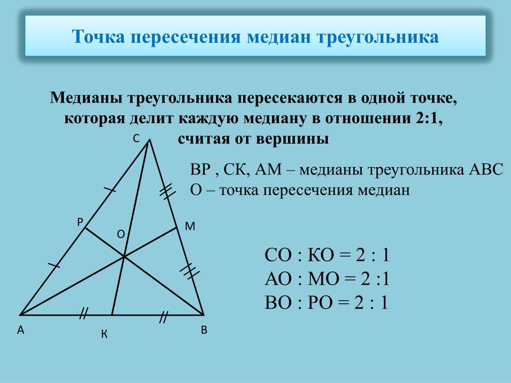 Центроид — это пересечение медиан равнобедренного треугольника.