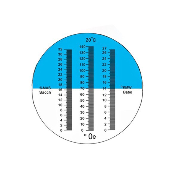 Плотность раствора изменяется в зависимости от количества сахара в нём. Для считывания показаний достаточно поднести к глазу окуляр рефрактометра и считать показание по нанесённой шкале. При этом вращением окуляра можно подстроить резкость под своё зрение. Соответственно, одним рефрактометром можно измерять различные величины. Существуют специальные таблицы для перевода различных величин. Но всё же проще и удобнее для разных величин использовать разные рефрактометры. Это практичнее и быстрее, к тому же бОльшая шкала может не уместится в конкретном рефрактометре.