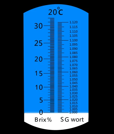 Единицы, часто используемые для обозначения количества сахарозы в жидкости, представляют собой градусы Брикса (°Bx) или градусы Плато (°P). Существует много историй о том, как эти весы разрабатывались и развивались; например Шкала Брикса основана на шкале Баллинга (другие шкалы включают Боме и Оксле). Для большинства целей Brix и Plato взаимозаменяемы; например 9,99325°Bx = 9,99359°P. Традиционно пивовары используют шкалу Платона, а виноделы – шкалу Брикса. Эти шкалы соответствуют процентному содержанию сахарозы в чистом водном растворе (по массе). Итак, если у нас есть 1 кг раствора, который, как мы знаем, содержит 90 г сахара (т.е. 910 г воды), у нас будет 9% сахара по весу, то есть 9°P или эквивалентно 9°Bx.