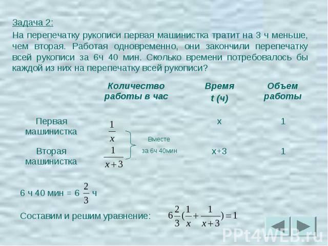 Сусловием . первая машинистка печатает 10 страниц в час, а вторая за 5 часов печатает столько же стр…