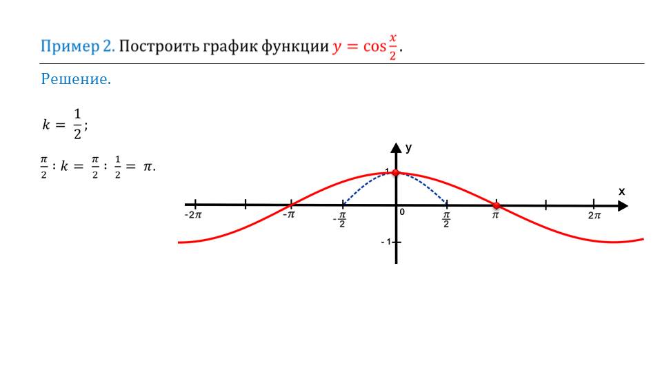2. При |k|<1 график функции y=f(x) растягивается в раз вдоль оси OX относительно оси OY . При k<0 полученный график дополнительно отображаем симметрично относительно оси OY.