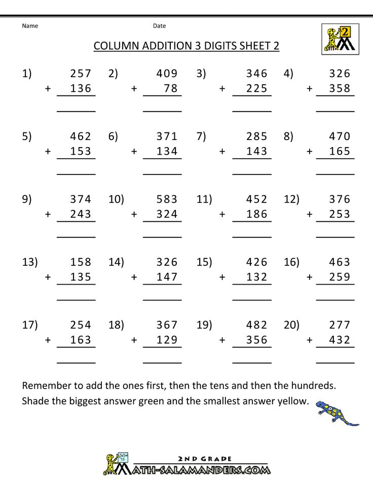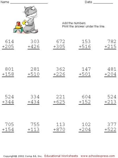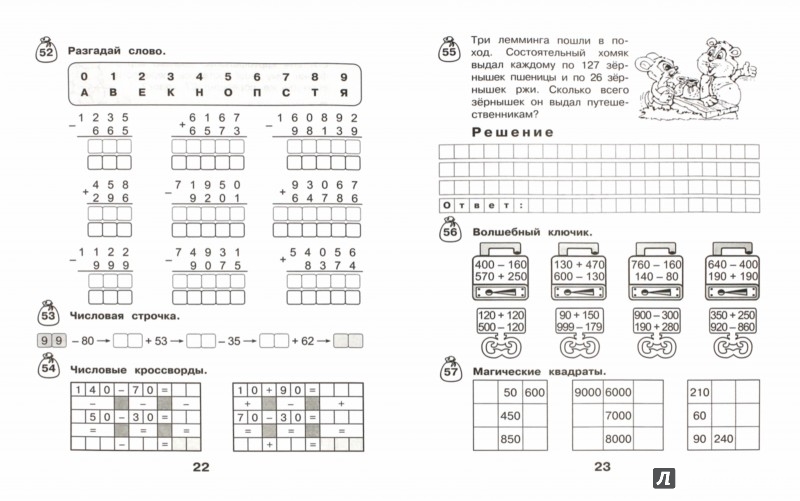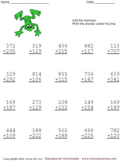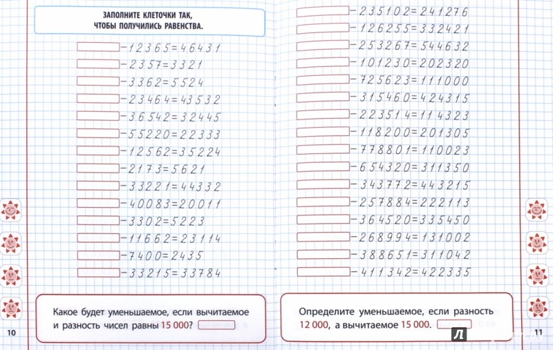 Черта в столбике означает знак равенстваУченикам 3–4 класса следует практиковаться в решении примеров с трёхзначными и четырёхзначными числами.