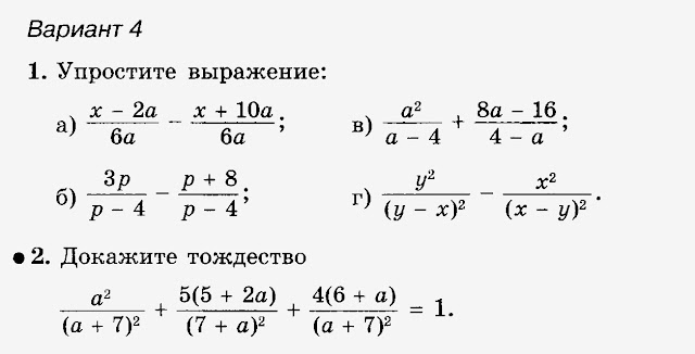 Сопоставление алгоритмов действий с обыкновенными и алгебраическими дробями. Решение заданий различной степени сложности.