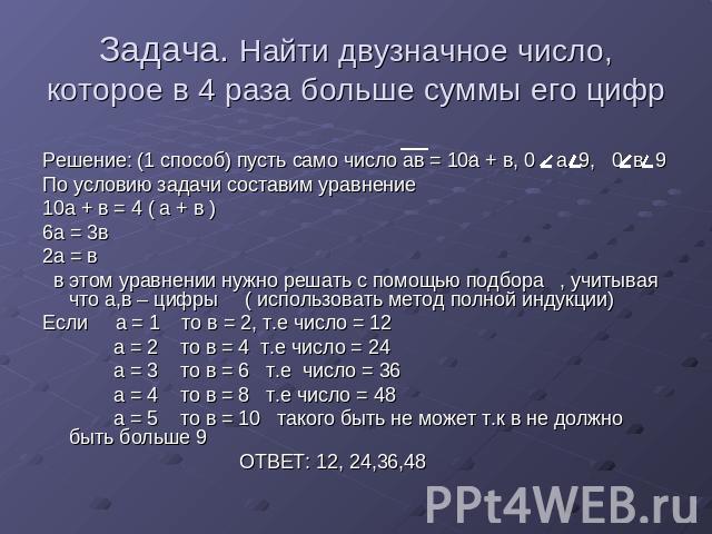 Решение: Первые четыре двузначных числа: 10, 11, 12, 13.