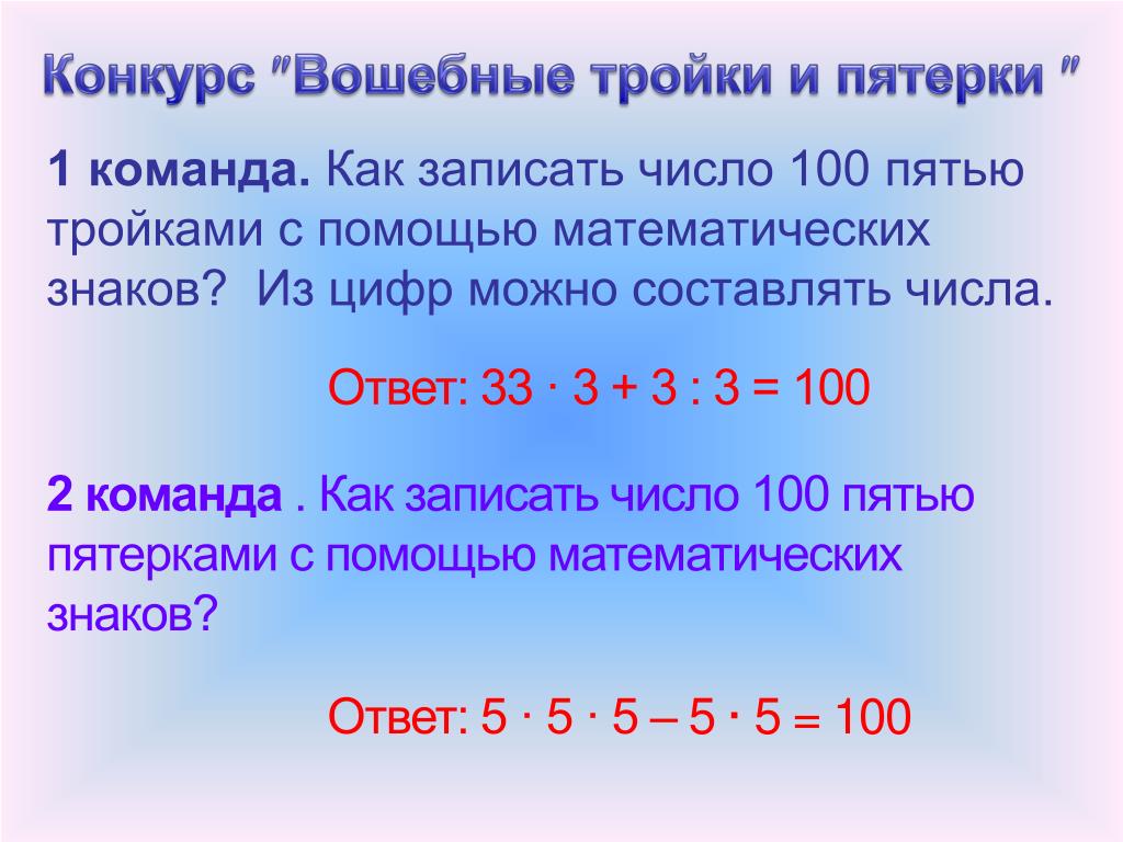 | 38 : 19 + 42 : 3 | (47 + 8) : 11 | 3 • (72 — 60) |
