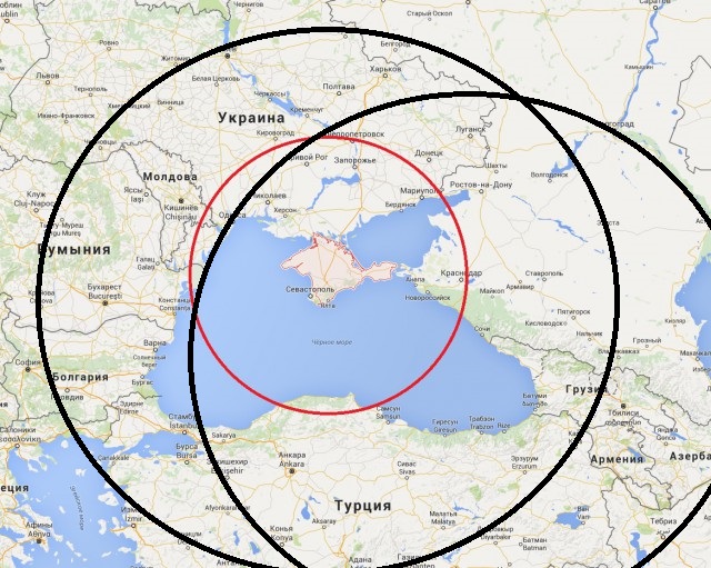 См. пример карты с разными значениями радиуса: