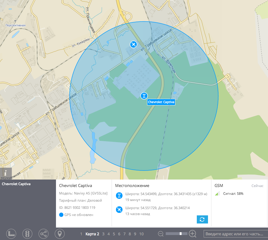 Величину радиуса и его расположение на карте можно изменять также в том случае, когда инструмент Радиус отключен (то есть окно Радиус закрыто).