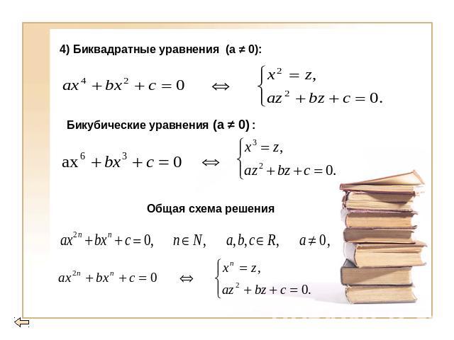 Квадратные и биквадратные уравнения. Биквадратное уравнение, решение биквадратных уравнений