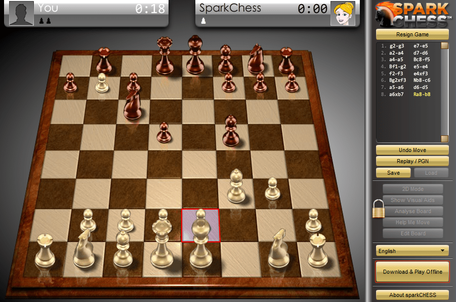 - spark chess — выбор из 15 возможных вариантов. Новичкам подойдет 1-3 степень, людям, имеющим опыт игры и даже разряд, — 4-5. Знатокам предлагаем сражаться с пк на уровне выше 6.