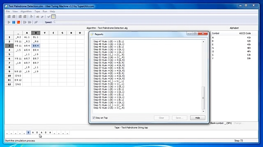 Существует небольшой интерактивный симулятор JavaScipt Turing Machine, доступный онлайн по адресу http://www.turing.org.uk/turing/ записки/tmjava.html