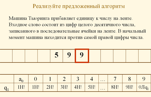 Можно сказать, что машина Тьюринга представляет собой простейшую вычислительную машину с линейной памятью, которая согласно формальным правилам преобразует входные данные с помощью последовательности элементарных действий.