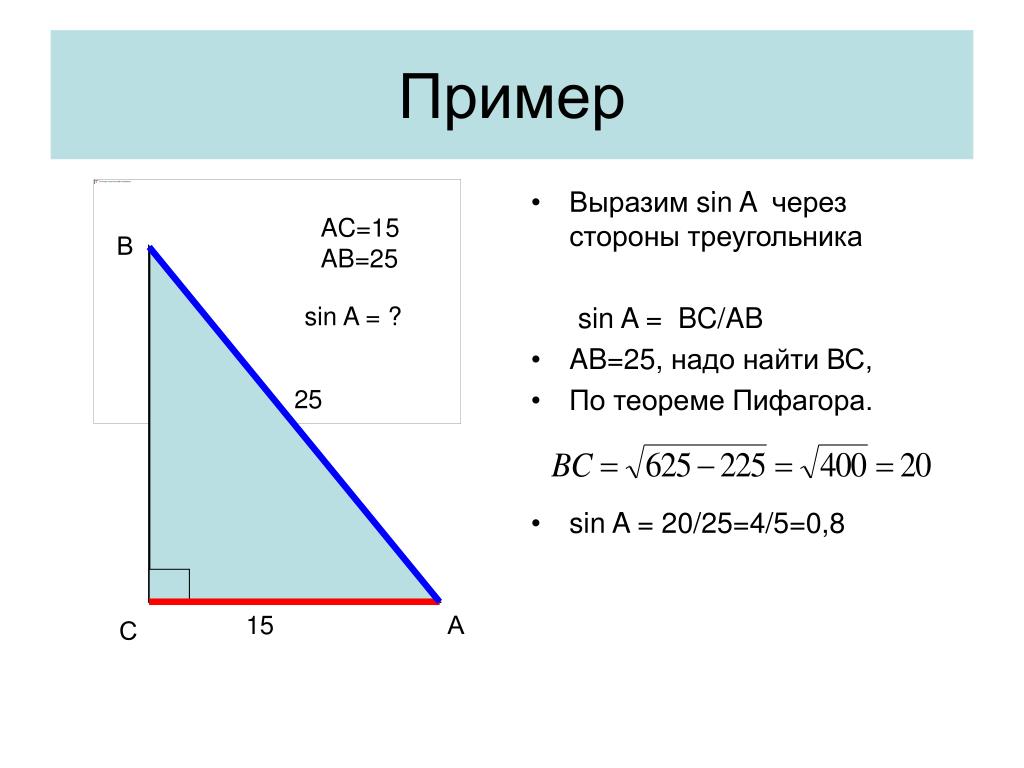2= ½. Прежде чем мы перейдем к следующему примеру, вот как мы соотносим стороны и углы треугольника: