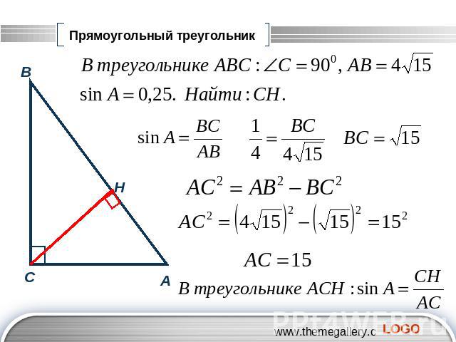 От того что синус , как знаменито, представляет собой отношение противолежащего катета к гипотенузе, а косинус – отношение прилежащего катета к гипотенузе, для решения поставленной задачи воспользуйтесь дальнейшим соотношением между этими параметрами:sin ?=НB/BCСоответственно, если вы хотите узнать катет прямоугольного треугольника, выразите его через гипотенузу дальнейшим образом:НB=BC*sin ?
