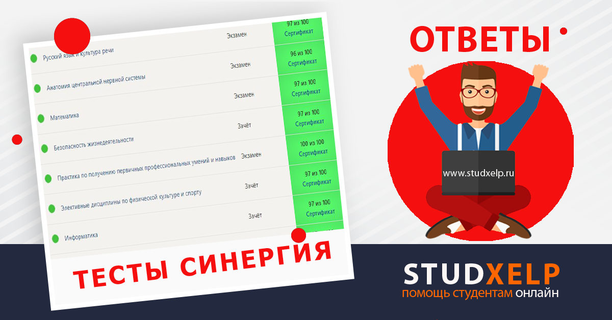 Синергия – один из самых востребованных и уникальных университетов страны. Учиться там мечтает каждый студент. Но сдать тестирования и экзамены в нем непросто. К ним необходимо долго готовиться, подбирать нужную и верную информацию, заучивать ее. Да, можно все сдать самому, но что делать, если вы работаете и не можете позволить себе качественную подготовку? Если вы хотите сэкономить время, то мы готовы вам помочь.