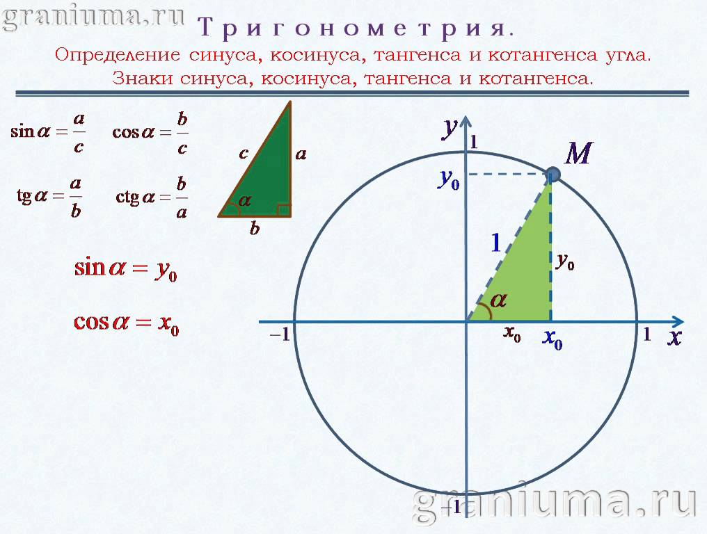 Π‘Π²ΡΠ·Ρ ΠΎΠΏΡΠ΅Π΄Π΅Π»Π΅Π½ΠΈΠΉ sin, cos, tg ΠΈ ctg ΠΈΠ· Π³Π΅ΠΎΠΌΠ΅ΡΡΠΈΠΈ ΠΈ ΡΡΠΈΠ³ΠΎΠ½ΠΎΠΌΠ΅ΡΡΠΈΠΈ