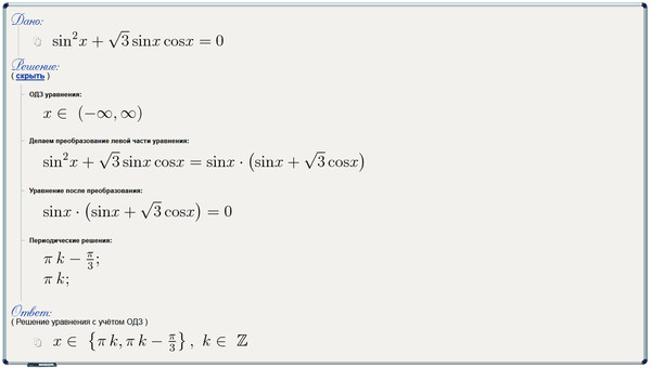 - Преобразуйте данное уравнение в уравнение вида: f(x)*g(x)*h(x) = 0, где f(x), g(x), h(x) — основные тригонометрические уравнения.