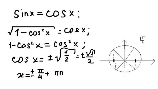 (sinx + cosx) 2 = 1 – sinxcosx, принадлежащие отрезку .