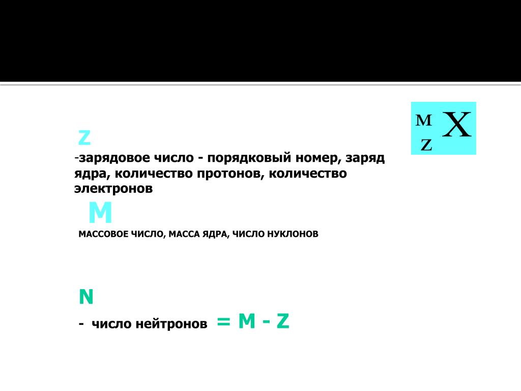 Где N – число нейтронов, A – атомная масса элемента (в целых числах), Z – заряд ядра атома или порядковый номер атома в периодической таблице Менделеева.