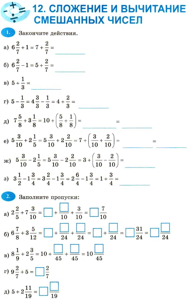 Home > Математика > Математические разделы > Дроби > Сложение и вычитание смешанных чисел