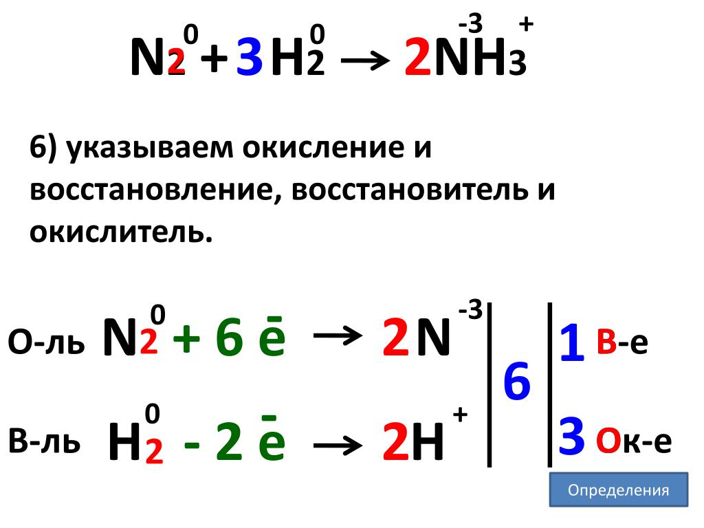 Теперь три атома кислорода исходят от трех молекул воды и всего четыре атома кислорода со стороны продуктов. Поместив коэффициенты, чтобы получить шесть атомов водорода с обеих сторон реакции, мы уравновесили атомы водорода, но мы также разбалансировали атомы азота и кислорода.