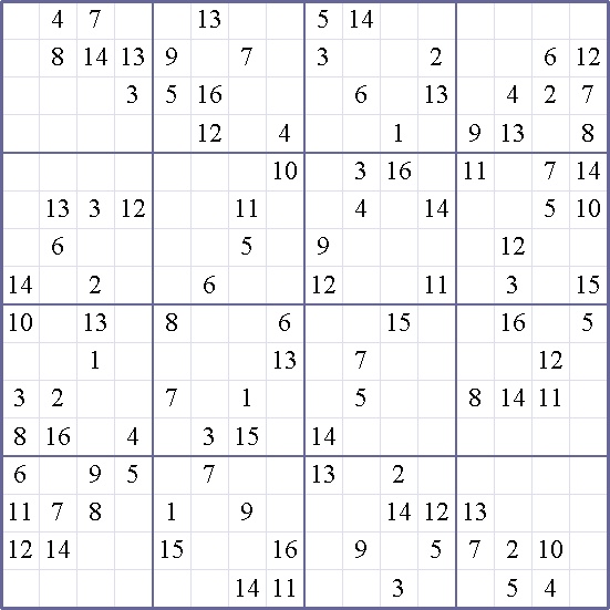 - Считается, что наибольшее количество подсказок, необходимых для получения уникального решения, равно 40 (если удалить любую из подсказок, результатом будет более одного решения).