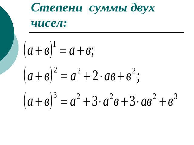 Возведение в степень суммы двух чисел. Формулы степеней и корней