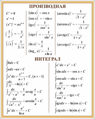 Таблица производных — Таблица производных и интегралов — n1.docТаблица производных и интегралов