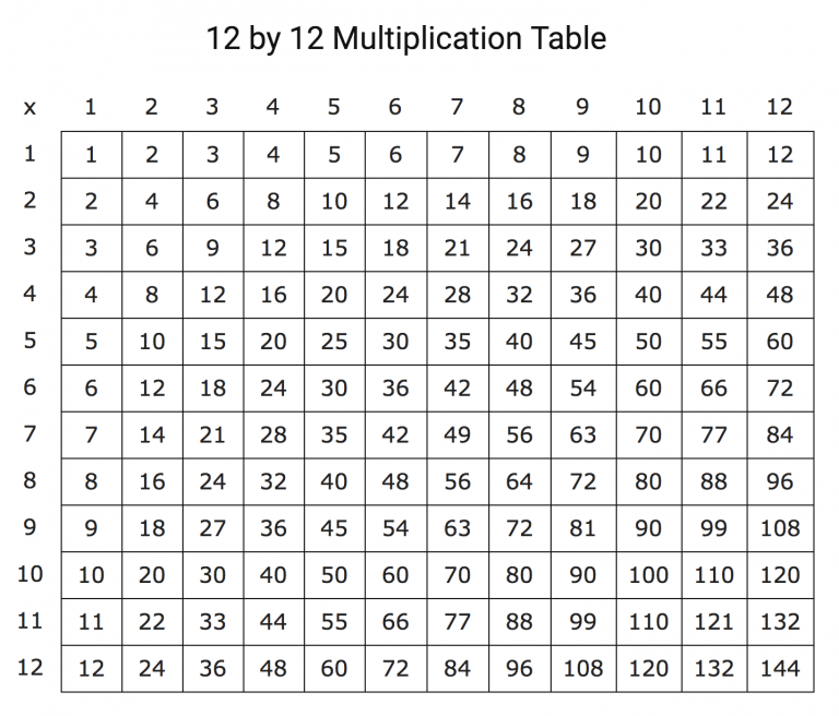 Что такое Таблица умножения на 12?