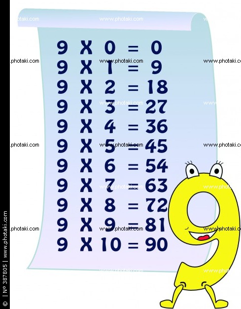 2 × 9 = (2 × 10) - 2 = 20 - 2 = 18 3 × 9 = (3 × 10) - 3 = 30 - 3 = 27 4 × 9 = (4 × 10) - 4 = 40 - 4 = 36 5 × 9 = (5 × 10) - 5 = 50 - 5 = 45 6 × 9 = (6 × 10) - 6 = 60 - 6 = 54 7 × 9 = (7 × 10) - 7 = 70 - 7 = 63 8 × 9 = (8 × 10) - 8 = 80 - 8 = 72 9 × 9 = (9 × 10) - 9 = 90 - 9 = 81youtube.com/embed/2_IXthC3M2g?rel=0″ frameborder=»0″ allowfullscreen=»»>