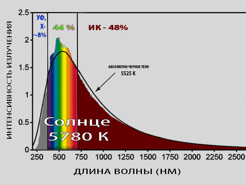 Спектр солнечного света подобен черному телу примерно такой же температуры
