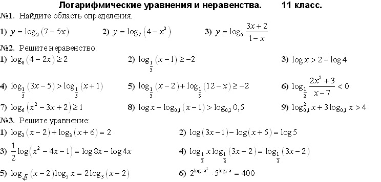 • Логарифмические уравнения