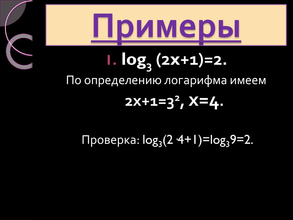• Простейшие логарифмические уравнения.
